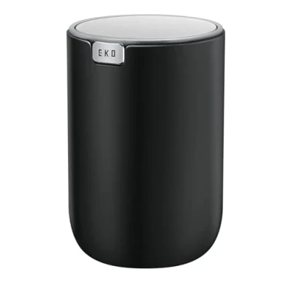 EKO Mini Desk Trash Can with Swing Top Lid 0.4 Gallon Small Table Round Wastebasket for Office, Home, Car (Black)