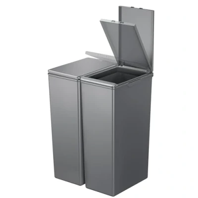 DOUBLE THE CONVENIENCE - Two matching 30L recycling bins for kitchen make waste sorting easy and space-efficient, with a smooth, modern look that blends seamlessly into any contemporary home. TOUCH TOP LID WITH STAY-OPEN FUNCTION - Press lightly to open the lid smoothly, and keep it open for longer tasks. Ideal when cooking or cleaning so you can dispose of waste without touching the bin repeatedly. RECYCLING STICKERS INCLUDED - Comes with 6 colour-coded labels (plastic, paper, glass, metal, mixed recycling, household waste), helping you set up a clear, personalised dual bin recycling system at home. FLEXIBLE INTERLOCKING DESIGN - Use the two bins separately in different rooms or connect them side by side to create a versatile recycling solution for easy waste separation (sold as a set of two). EASY TO CLEAN - Smooth, wipeable surfaces make daily cleaning quick and fuss-free, while the removable lid makes waste disposal and liner changes effortless and mess-free, ideal for modern rubbish bins for kitchen.