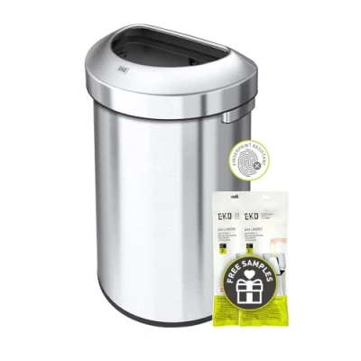 EKO Open Top Trash Can, Stainless Steel, 60 Liter, Semi Round