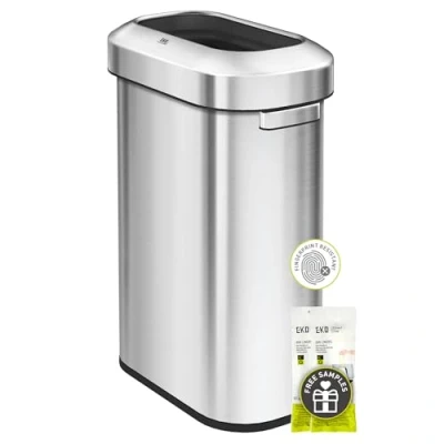 Extra Large Capacity - At 23.7 Gal/60L, this garbage bin suits both home and business environments, catering to diverse disposal requirements. Slim Space-Saver- A sleek vertical design fits snugly even in tight spaces. Effortless Trash Disposal - The wide opening ensures easy and convenient disposal of trash, making clean-up a breeze. Easy Cleanup - Detachable lid simplifies cleaning and bag changes. Easy Mobility - Equipped with practical side handles, moving this trash bin becomes effortless, facilitating hassle-free repositioning. Bag Stays Put - Our stainless steel garbage can has a built-in plastic bag fixer, keeping your trash bag securely in place without any messy overhang. No More Messy Overhangs - A wide collar effectively hides bags from sight, providing a cleaner, more organized visual appeal. Secure Placement - The skid-resistant base provides stability, preventing the trash can from slipping or moving unintentionally.