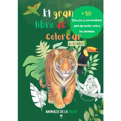 EL GRAN LIBRO de COLOREAR 6 12 AÑOS animales la selva: Más 50 Dibujos y curiosidades para aprender sobre los selva