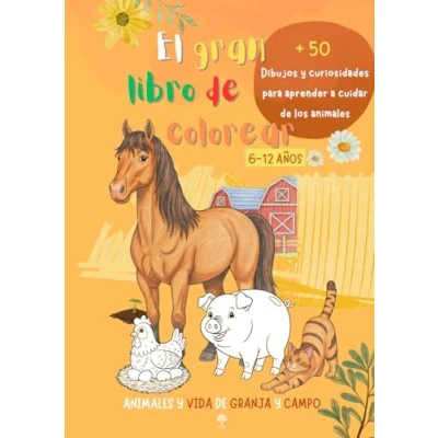 EL GRAN LIBRO de COLOREAR 6 12 AÑOS animales y vida granja campo: Más 50 Dibujos curiosidades para aprender a cuidar los