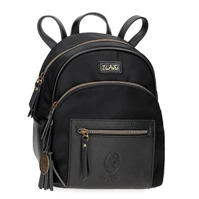 El Potra Wool Casual Black 22 x 25 10 cm Polyester and PU Backpack, Black, Backpack