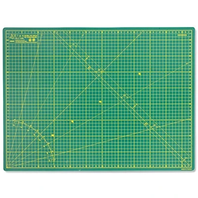 PROTECT YOUR FURNITURE - The Elan cutting mat is ideal to use as sewing cutting mat or craft cutting mat. This crafting mat is self healing and is also used as fabric cutting mat, dressmaking cutting mat, modelling board, or as a versatile craft cutting board. SELF-HEALING - The A2 cutting mat self healing consists of 5 layers of different PVC materials. When an incision is made, the top layers of the green cutting mat contract together to hide the cut and keep the surface flat. SUSTAINABLE - The two underlying layers of the Elan cutting mat A2 self healing are made from strong recycled PVC, which reduces the environmental footprint of our product. The middle layer gives the art cutting board craft robustness. To maintain quality, do not bend the craft mat A2. PROFESSIONAL GRID - Both sides of the A2 self healing cutting mat include a metric patchwork grid. The patterns and text on the hobby mat are professionally applied, ensuring long-lasting readability. COLOUR & SIZE - Elan art mat green has two grid colours. The grid is yellow on one side and white on the other. Elan cutting mats have a metric scale available in sizes 200x100 cm, 150x100cm, A0 (120x90cm), A1 (90x60cm), A2 (60x45cm), A3 (44x30cm), A4 (30x22cm).
