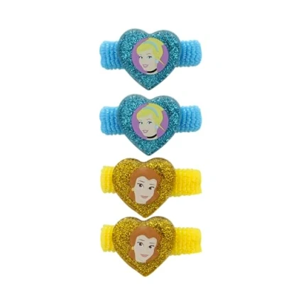 4 x Fancy Elastic Bands Glitter elastic with Cinderella and Belle Can be used on all hair types