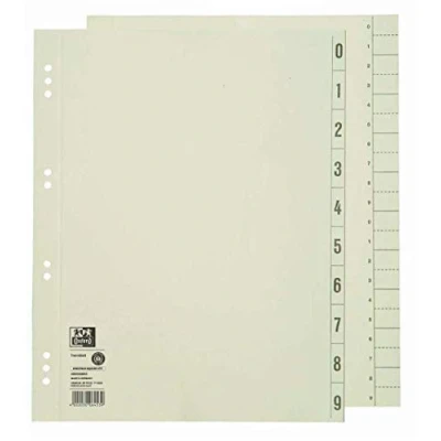 Description: Slip sheet with 0-9 printed numbers Kraft cardboard (RC) 230 g / square meter 6 and 8 cm holes for A4 Printed on 2 sides