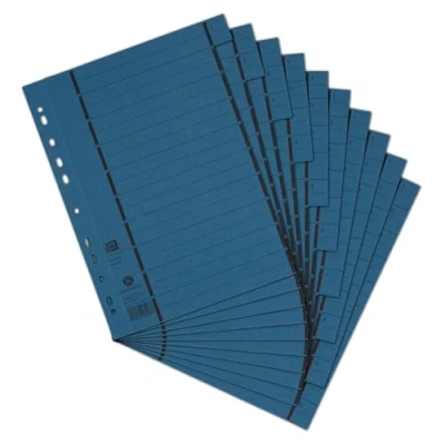Format: DIN Extra-wide A4, dimensions: 240 x 300 mm (W x H) Blue Made from 250 g/m² manila cardboard (recycled material); certified with the "Blue Angel" environmental seal Lined, detachable tabs 1 - 10 Pack of 100