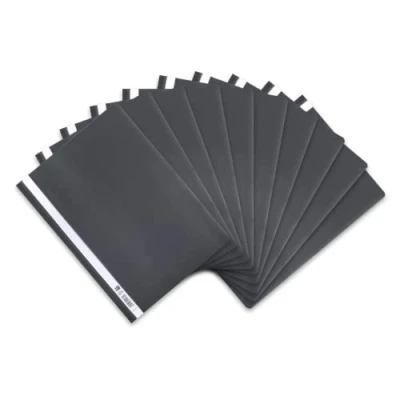 The Oxford plastic file folder consists of a coloured back panel in the colour dark grey and a transparent lid On the left side of the lid, the staplers have a white cardboard strip, which can be pulled out for labelling Thanks to the elastic and durable plastic, the folders can also be bent without damaging the contents The plastic file folders offer a quick and uncomplicated shape for filing all sheets up to DIN A4 format Measures 9" W x 12.2" H, you will receive 10 file folders in dark grey