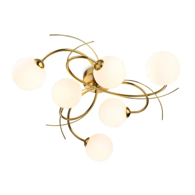 The Firstlight Elba 6-Light Semi-Flush Ceiling Fitting is a stunning, high-capacity fixture that serves as an elegant centrepiece while providing generous illumination. This elegant contemporary 6 light flush fitting features a dynamic design of sweeping, curved arms, all finished in a fine quality brushed brass. Six spherical opal white glass shades are distributed across the fixture, creating a sculptural and sophisticated light source that adds warmth to your interior.This semi-flush design is perfect for rooms with lower ceilings, projecting just 195mm. The substantial 490mm diameter ensures broad and powerful light coverage. The combination of six lamps and the opal glass shades ensures the light is ambient, comfortable, and glare-free, making it ideal for creating a relaxing atmosphere. It is highly versatile and ideal for use in living rooms, kitchens, bedrooms, and hallway areas.The fixture requires six standard G9 bulbs with a maximum wattage of 33W each (sold separately). The multiple lamps ensure powerful general room illumination while maintaining excellent contemporary style. We strongly recommend using LED G9 capsule bulbs for superior energy efficiency and long-lasting performance. Shop now at SimplyLED to secure this premium contemporary ceiling light.Requires 6 x G9 bulbs max 33W (sold separately).