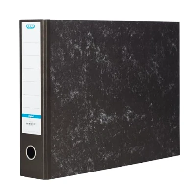 A3 FORMAT FOR PROFESSIONAL FILING – Designed in an A3 size, this lever arch file is ideal for filing reports, drawings, spreadsheets, or oversized documents, offering generous space for organised storage in professional, educational, or studio environments ROBUST PAPER-COVERED BOARD CONSTRUCTION – Crafted from strong paper-covered board, this traditional lever arch file delivers excellent rigidity and durability while maintaining a classic, professional appearance suitable for everyday use HIGH-CAPACITY 80MM SPINE – Featuring a wide 80mm spine with a 63mm filing capacity, the file can securely hold up to 630 sheets of paper, making it ideal for managing large projects, archives, or long-term document storage HEAVY-DUTY METAL LEVER ARCH MECHANISM – Equipped with a strong metal arch mechanism and an easy-to-use lever, the file ensures smooth opening and closing while keeping documents securely in place during frequent handling SPINE LABEL FOR EASY IDENTIFICATION – A practical spine label allows for quick and clear identification of contents, helping to organise multiple projects or folders efficiently on shelves or in filing cabinets BLACK CLOUD-EFFECT FINISH – Finished in a classic black colour with a subtle cloud-effect texture, the file combines a professional aesthetic with understated style suitable for office, academic, or home workspaces