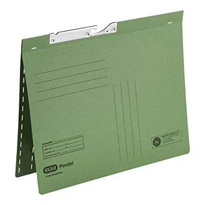 The document can be divided into two processes and stored on the left fold in official filing (new font from below), on the right fold in commercial stapling (new font from above). double fold pendulum stapler with a stapling mechanism (80 mm) on the left and right side as well as labelling lines on the lid. 20232. 023 with organisational print and slots for plug-in signals, tabs and visible strips made from 320 g/m² manila cardboard (recycled and blue angel), with high-quality metal pendulum fitting. size: 318 x 275 mm (W x H) / you will receive 25 pendulum folders