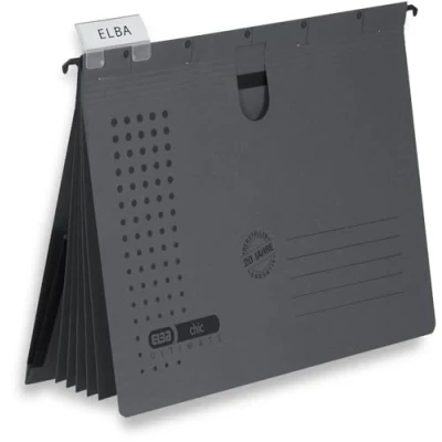 ELBA Chic Ultimate 100333016 Suspension File Pack of 5 Recycled Cardboard for DIN A4 with Dividers and Binding Inner Pocket on The Back in Anthracite