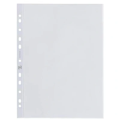 DIN A4 format Contents: 100 pieces in a box Made from 0.08 mm polypropylene films - particularly environmentally friendly and indelible Crystal clear open top With 11 holes for convenient storage in folders, binders or ring binders