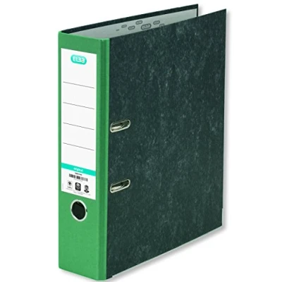 Folder for DIN A4 format, 80 mm spine, marbled pages Branded product from Elba for regular use in the office or at home Folder spine reinforced with green special paper, pages covered with cloudy marble paper With quality lever mechanism, glued spine label, metal edge protection, wheel eyelets and finger hole ring Blue Angel certified