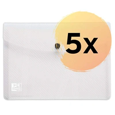 High quality wallets with beautiful design and special feel, surface with graphic pattern In A5 format, with rounded corners and press stud closure Wide range of uses – e.g. for receipts, travel documents, money, vouchers, negatives or for protecting and storing face masks Made of clear plastic, easy to disinfect, durable and wipe clean You will receive 5 colourless, transparent bags