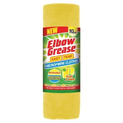 Elbow Grease Easy Tear Microfibre Cleaning Cloths Reusable & Machine Washable Dusts, Cleans, Soaks Up Liquid Wipe 30cm x 24cm (Yellow, 10 Pack)