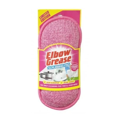 The Elbow Grease Scrubbing Pad Pink Cs is designed for heavy duty scrubbing of hard-to-clean surfaces. It securely attaches to the user's hand and is made of a non-abrasive material to help to prevent scratching. The scrubbing pad promises optimal strength and long-lasting durability for tackling the toughest messes.. 1 x 34g Scrubbing Pad. Heavy-duty scrubbing. Secure attachment. Non-abrasive material. Optimal strength