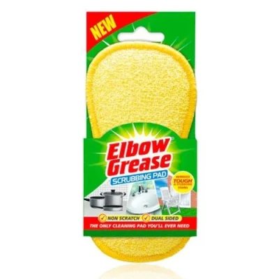 Get this non-scratch, Dual-sided Scrubbing Pad from Elbow Grease. The perfect product for all household chores, like washing-up and wiping windows, this flexible scrubbing pad takes all the effort out of cleaning stubborn stains.. Strong and hardwearing, this scrubbing pad will be your long-term cleaning best friend.. 1 x Elbow Grease Scrubbing Pad. Dual-sided. Non-scratch