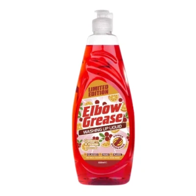 Cut through everyday grease and food residue with Elbow Grease Cranberry and Orange Washing Up Liquid, a limited edition power degreaser designed to leave dishes clean with a bright fruity citrus fragrance.. Limited edition cranberry and orange fragrance with fresh fruity citrus notes. Power degreaser designed to tackle grease and stuck on food. Suitable for use on glasses pans plates and cookware. Concentrated formula for effective everyday dishwashing. 600ml bottle ideal for regular household use