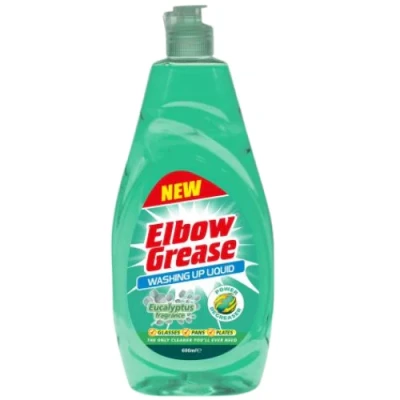 Power through everyday washing up with Elbow Grease Eucalyptus Washing Up Liquid, a strong grease cutting formula designed to leave dishes clean and fresh with a crisp eucalyptus fragrance.. Eucalyptus fragrance with a clean fresh aroma. Power degreaser designed to cut through grease and food residue. Suitable for use on glasses pans plates and cookware. Easy to rinse liquid formula for everyday dishwashing. 600ml bottle ideal for regular household use
