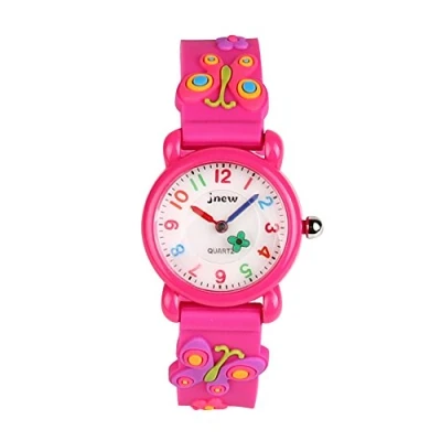 ele ELEOPTION Children's Watch Waterproof 3D Cute Cartoon Design Round Dial Silicone Rubber Jelly Color Band Quartz Wristwatch for Little Xmas Girls Boy Kids Children (Butterfly, Rose)