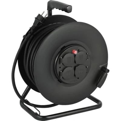Pro-Line - IP44 Professional Extension Cable with Reel Black - Section 3G 2.5 mm² - 40 m Cable H07RN-F - Section 3G 2.5 mm² Ideal for construction sites or professional jobs Power coiled 1100 W - Power unwound : 3200 W IP44 protection (protection against foreign objects and splashes of water); each outlet has a self-closing lid, which ensures greater safety at work, Weight: 23.14853751 pounds, Manufacturer: Electraline