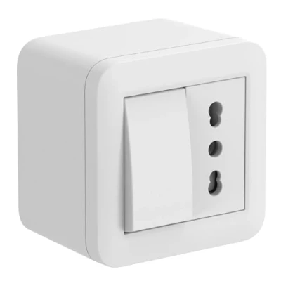 Electraline 60477 Surface Box with Bivalent Socket and Diverter FIXA 10A, White, IP40, Compatible for Installation Hard Tube Duct