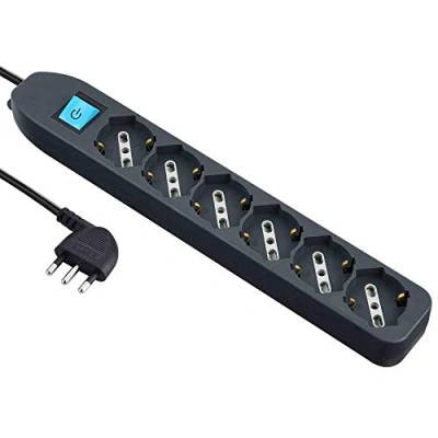 Electraline 62074. Mehrfachsteckdose 6 Sitzer Blasenfolie (Schuko + 10/16 A) mit Schalter Kabel 1,5 m, schwarz, 62074