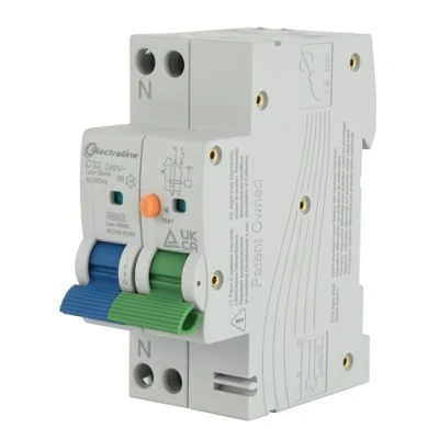Electraline 87015 Differential Circuit Breaker (RCBO), 32A, Type A, Curve C, Sensitivity 30mA, 1P+N Connection,
