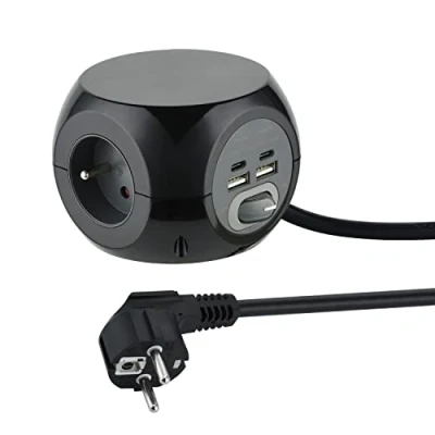 The mini Cube power strip is perfect for avoiding overlapping sockets, thanks to its cubic shape Power strip 3 sockets + 3 USB port 24A with switch Cable HO5 VV-F Length 3 meters Section 3G1, 5 mm². All plugs are equipped with child protection Prevents the introduction of foreign bodies into the socket Trusted brand. NOTE - turn on power button for plug and USB For best experience, use only with smartphone or other small electronic devices, Weight: 1.5652820602 Pounds