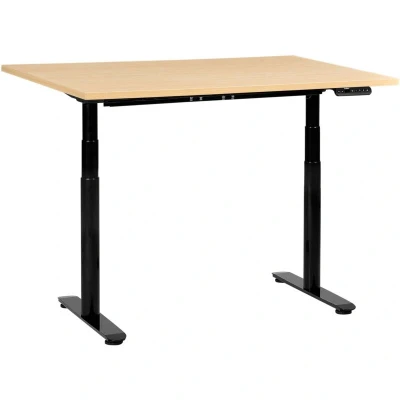 General description Electric Adjustable Standing Desk DESTINAS in Black and Light Brown offers a versatile solution for both study and work environments. With its electric height adjustment feature and three programmable memory settings, users can easily transition between sitting and standing positions. The desk is designed for stability and safety, featuring wide leg bases and an anti-collision sensor. Technical specifications Product Type: Adjustable Desk Style: Modern General Color: Brown, Black Frame Colour: Black Shade: Light Brown Main Material: Particle Board Additional Material: Steel Legs Material: Metal Top Material: Engineered Wood Shape: Rectangular Adjustment Type: Electric Finish: Powder Coated Power Output: +5V 2A Voltage Rating: 100-240 V USB Port: 1 Dimensions: Depth: 60 cm, Width: 120 cm, Height: 67-132 cm Weight: 42 kg Weight Capacity: 120 kg Installation Full assembly required Estimated assembly time: 45-60 minutes Usage Recommended to use place mats and coasters