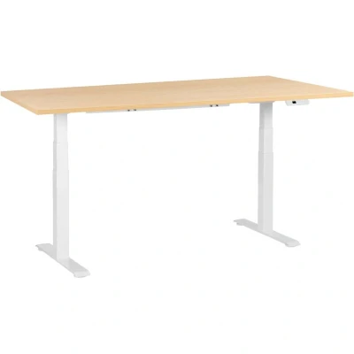 Electric Adjustable Standing Desk Modern Square Feet 180 x 72 cm Light Brown Top and White Base Destines