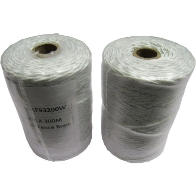 General description Keeping animals contained in your paddock can be a long and arduous task. The Electric Fence Rope Poly Fencing is designed to make this process easier. This product comes in a pack of 2 reels, each containing 200 meters of high-quality electric fencing rope that is 3mm thick. The white color of the rope ensures high visibility, making it easily seen by both animals and humans. Its thin diameter does not spoil the natural view of the surroundings, while the rope's construction includes 6 strands of 0.15mm diameter wires to carry an electrical current. Technical specifications Number of Reels: 2 Colour: White Diameter of Rope: 3MM Rope Length: 200M Minimum Breaking Load: 400KG Conductivity: 3.8Ω Strands of Wire: 6 Wire Strand Diameter: 0.15MM Product Code: SFAGEF93200W/2 Weight: 0.75kg Usage This Electric Fence Rope is extremely strong and durable, making it suitable for containing various animals, including horses. It effectively prevents animals from rubbing,