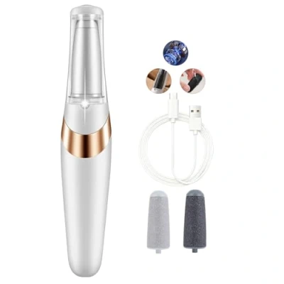 EASY TO USE: Our foot files for hard skin electric make callus removal easy, giving you beautifully smooth feet in minutes. Achieve salon-quality results at home with our electric foot file hard skin remover, perfect for maintaining soft and healthy feet all year round. Powerful Battery: Foot file hard skin remover is rechargeable. Rechargeable foot file electric with high quality large capacity lithium battery can working for about 60 Minutes. Only charge about 3 Hours. USB charging cable can easily connect to laptop, computer, power bank, socket and other USB adaptor. 2 Interchangeable Roller Heads: Fine roller head is used for the callus of hands,cocked dead skin and more delicate skin care. Coarse roller head for stubborn thick callus and dead skin.Unique rollers grinding spins 360 degrees, at an amazing 40 times asecond, 360degrees wide angle to gently andeffectively buff away hard, jagged skin on the heels. Built in LED Light & Ergonomic Design: Just open button, roller and lights start working together.It is designed to fit comfortably in your hands, making your skin much smooth! We upgraded the chip and internal structure to reduce noise and vibration, and the built-in LED light can help you illuminate difficult angles during use.pedicure tools kit suitable for men and women, is a great gift for your family, lovers and yourself. Waterproof Design: IPX7 waterproof design is adopted inside and outside, allows it can be used safely even in the shower. After using electric callus remover, you can remove rollers and clean it with running water. The electric foot scraper will effectively solve the problem of bacteria growing in the gap and protect your foot health. Please dry your feet before use for better results.Perfect for travel and home.