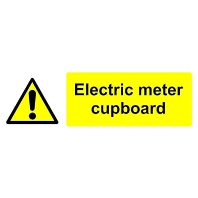 Electric meter cupboard safety sign. Self adhesive sticker. Printed using the latest digital technology and laminated for extra durability. Remove backing film and apply to dry, smooth, oil free surface. All signs come with a 5-year warranty. All our signs are UV resistant meaning they will not fade in sunlight. Our vinyl stickers are temperature resistant from -40°C to +80°C.