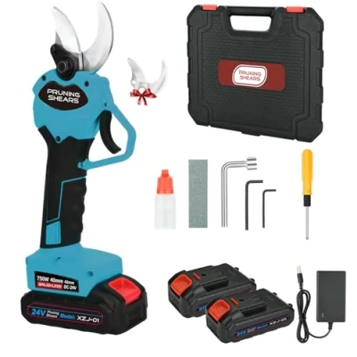 Electric Pruning Shears, Cordless Secateurs Battery Professional Branch Cutter with 2PCS Battery, MAX 40mm Cutting Diameter Scissors for Gardens Tree Branches