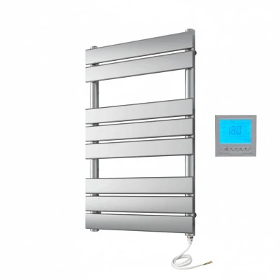 Electric Richmond Heated Towel Rail Chrome Flat Panel 500mm W x 800mm H Bathroom Radiator + 7 Day Timer/Thermostat