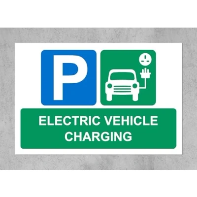 Electric vehicle EV charging parking sign. 3mm Aluminium sign. Digitally printed and laminated for extra durability. 10mm Radius rounded corners, no sharp edges. All signs come with a 5-year warranty. All our signs are UV resistant meaning they will not fade in sunlight. Suitable for indoor & outdoor use.