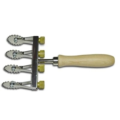 4 stainless steel toothed blades Wooden handle Blade diameter 36 mm