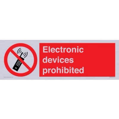 P013 : No activated mobile phones This sign is made from vinyl silver sticker 41 landscape Sign Text: Electronic devices prohibited