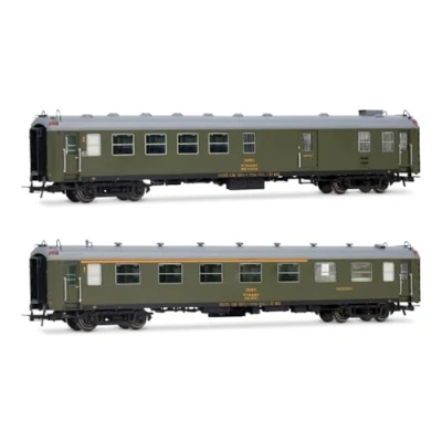 RENFE, 2-unit set of 5000 coaches, consisting of 1 x BBD4 baggage + 1 x AAR bar. Featuring old bellows, in olive green livery, ep. IV. Electrotren Coach and Coach Packs span a wide selection of eras and model railway themes, perfect for extending your rake. From sleeping coaches to restaurant coaches and more., Manufacturer: Hornby Hobbies Ltd