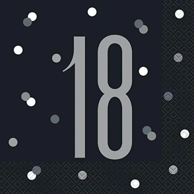 BOLD & FESTIVE DESIGN: These elegant birthday number 18 black glitz luncheon napkins (16cm) are perfect for celebrating your teen's milestone birthday in style, featuring a glamorous black design that adds a sophisticated touch to any party decor. STURDY & DURABLE MATERIAL: Made with high-quality materials, our napkins are constructed to handle all the spills, crumbs, and inevitable messes that come with a fun-filled birthday bash, ensuring a hassle-free clean up after the party. MADE FOR CELEBRATIONS: Celebrate your young adult's transformation with these sleek, black napkins, specifically designed to enhance the atmosphere at their memorable 18th birthday bash. EASY & CONVENIENT:Our 16cm napkins are the perfect size for luncheons and snacks, making it easy to set your table in no time, and leaving more time for you to enjoy the party with your birthday teen and their friends. PACK OF 16: The napkins come in a pack of 16, providing you enough quantity to cater to all your guests, making it a cost-effective choice for your teen's birthday party, and ensuring a consistent theme throughout the event., Manufacturer: Unique