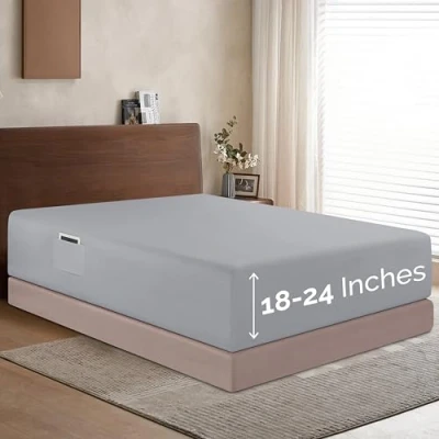 Elegant Comfort 1500 Premium Hotel Quality 18 24 Inches Deep Extra Pocket Single Fitted Sheet for High Mattress, Luxury and Softest, Smart Wrinkle Free, Twin/Twin XL, Silver