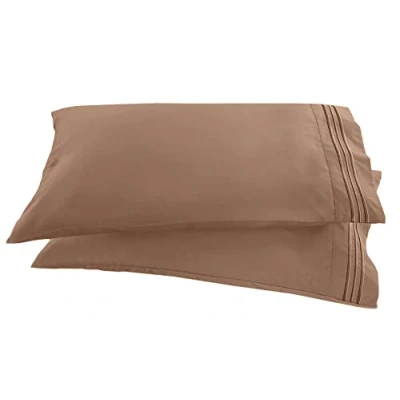 Elegant Comfort 1500 Thread Count Embroidered Egyptian Quality Luxurious Silky Soft Wrinkle & Fade Resistant 2 Piece Pillowcase, King, Taupe