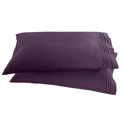 Elegant Comfort 1500 Thread Count Embroidered Egyptian Quality Luxurious Silky Soft WRINKLE & FADE RESISTANT 2 Piece Pillowcase, Standard/Queen Size, Purple