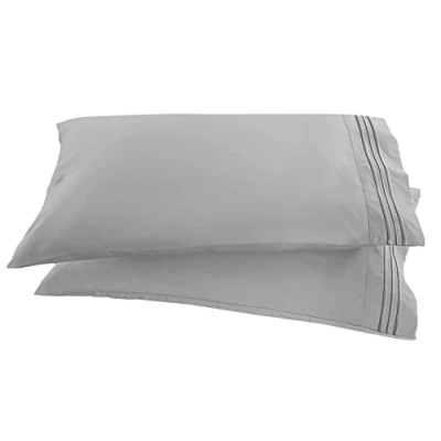Elegant Comfort 1500 Thread Count Embroidered Egyptian Quality Luxurious Silky Soft WRINKLE & FADE RESISTANT 2 Piece Pillowcase, Standard/Queen Size, Silver
