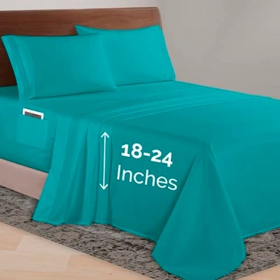 Elegant Comfort Luxurious 1500 Premium Hotel Quality Microfiber 4 Piece Sheet Set, 18 24 Inches Deep Extra Pocket Sheets Ultra Soft 4PC Sheets, California King, Turquoise
