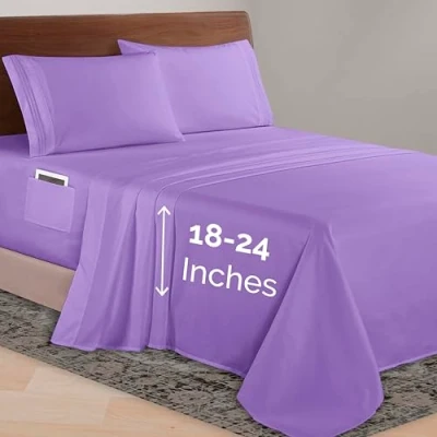 Elegant Comfort Luxurious 1500 Premium Hotel Quality Microfiber 4 Piece Sheet Set, 18 24 Inches Deep Extra Pocket Sheets Ultra Soft 4PC Sheets, Full, Lavender