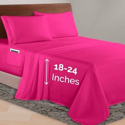 Elegant Comfort Luxurious 1500 Premium Hotel Quality Microfiber 4 Piece Sheet Set, 18 24 Inches Deep Extra Pocket Sheets Ultra Soft 4PC Sheets, King, Hot Pink