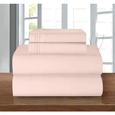 Elegant Comfort Luxury 1500 Premium Hotel Quality Microfiber 4 Piece Sheet Set Wrinkle Resistant, All Around Elastic Fitted Sheet, Deep Pocket up to 16", Queen, Blush